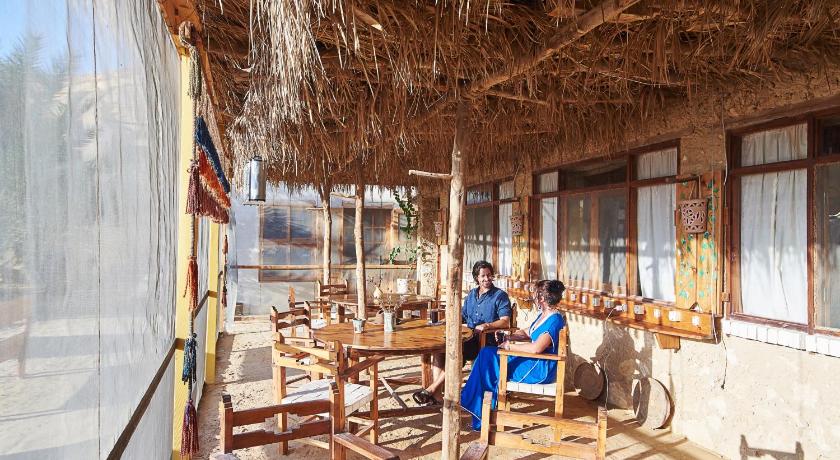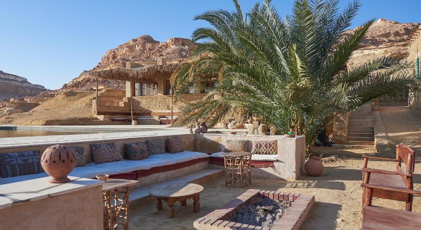 The oasis of Siwa and its surroundings and especially this PERFECT ACCOMMODATION were the only positive exception concerning the people (not a single scam, only respectful people in Siwa). The hostess is a wonderful, open-minded, educated, uncomplicated and honest woman and the staff consists of extremely respectful, friendly and always helpful people. Even my wife never felt uncomfortable or "ogled" when bathing in her swim suit. The rooms are simple but large, cosy and tastefully furnished. All windows are fitted with fine-mesh nets, which meant we could sleep with the windows open at night without having mosquitoes in the room. We had a USB socket to charge our mobile phones in the room. In the public area also 230V sockets are provided. An encrypted wifi network was indicated on the mobile phone, but we had no need and therefore did not ask. Candles are provided free of charge which make evenings in the room or in the private lounge outside even cosier. There is a very large natural pool and extensive relaxing areas with plenty of sun and shade spots. Furthermore, it is only a 3 min walk to the lake. There, the accommodation also provides sun loungers and shady shelters. What is also particularly impressive is that the rocks rise directly behind the accommodation, to which one can walk with simple shoes. The rocks offer a wonderful view and are also very interesting themselves due to the many fossils in the rocks. Breakfast and the optional dinner are freshly prepared daily and extremely delicious. The portions are more than generous. The whole area is very quiet. Siwa town is a 10-minute drive away. Having your own car is the best option. There is no public transport to the accommodation, but in Siwa town there are taxis and tuktuks available which will take you to Talist Siwa for little money. On our trip, Talist Siwa was the most beautiful and best accommodation and we would choose it again anytime.