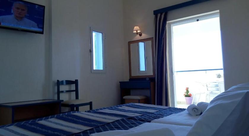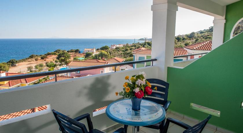 The hotel had just opened for the season...If you have mobility problems this hotel is not for you. There are a lot of steep steps to climb. We.were wamly welcomed by the fabulous receptionist, Evelyn . The Manager of the hotel.offered us a bottle of wine with our dinner, which was fair. The view from the hotel is magnificent overlooking the sea. The staff went out of their way to please you. My room was changed to a lower level due to the steps. We had 3 rooms all.with balconies overlooking the sea. The outdoor swimming pool.is big and very clean. Lovely towels and a bar The hotel shuttle to the town.of Skala runs regularly for a minimal.charge of 2 Euro.per person . Very reliable .Breakfast is good . Every day it improved. You have a wide choice of eggs pastries, vegetables fruit yogurt. Juices etc The beach opposite the hotel.is good if you are young and don't have mobility problems . If you hire a car you can do it via the hotel. Parking is free There is a small gym, billiards Shops are quite a distance from.the hotel... Coffee and tea corner provided in room. As well.as a safe...Lots of closet space Great air conditioning in the room As well as wifi throughout the hotel The TV only has one English channel BBC Thank you Evelyn for your outstanding assistance