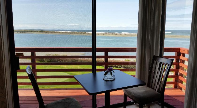 The view from right outside the sliding glass door (and inside) was wonderful ... overlooking the river and the ocean. The house was a very nice place to stay, and quite clean and comfortable. Our hosts were lovely people and the breakfasts were absolutely delicious!