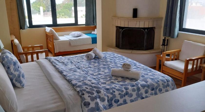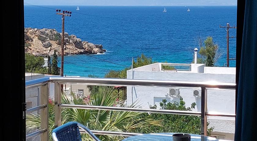 The hotel is in a quiet area close to the port of Souvala, lots of taverns and cafés and a supermarket. The hotel has two swimming pools, all facilities are in good order and are comfortable and pleasant to use. I would recommend this hotel for a relaxed and slow vacation, either you use the hotel as a base to explore the island or to relax next to the pool. The hotel is located close to a nice mountain hiking route to the monastery and archaeological site (4 km to the top, elevation 210 m), which was a nice addition to the stay in the area. It is better to have a car to explore the island. If you don't have one upon arrival, the hotel owner can arrange the car rental to be delivered to the hotel.