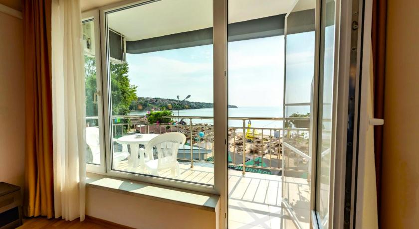 The building is clean, right near the beach, where you have available beach beds with umbrella for you.the hotel restaurant is right next to the hotel, where you can have your breakfast with lovely sea view. The room is clean with comfortable beds and air conditioning, if you can’t handle the heat outside. Also the dark curtains are very nice touch.The terrace is considered with table and where you can lay your beach towels. There is also hairdryer available in the room. The staff is wonderful and very kind, always happy to help, and in service of you room to stay clean. And one important segment of your stay is that you have a parking space. All in all, we had a very good vacation and in our opinion is good value for it’s price. Would visit here again.
