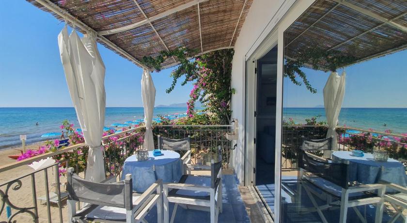 Excellent location close to many restaurants/shops. Hotel was stunning with lots of interior design and beautiful furniture along with a lovely court yard, perfect for restful moments and coffee. Beach was very well maintained, cleaned daily by the life guards with plenty of room for your sunbed and the most amazingly calm, crystal clear sea I have ever seen. We spent many happy hours in the sea and on the beach. Breakfast was good, hot or cold breakfast with coffee, pastries ,toast etc. Their lunch time menu we found excellent, the food was of a high standard ( quality Chef ) and great value for money.
