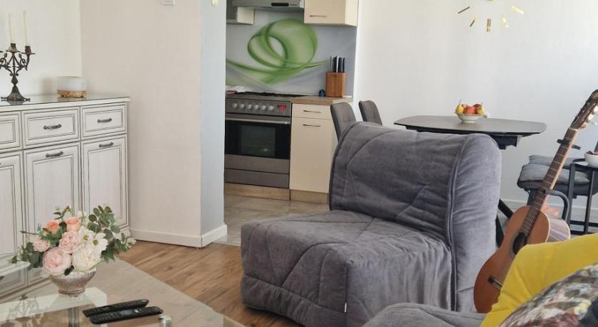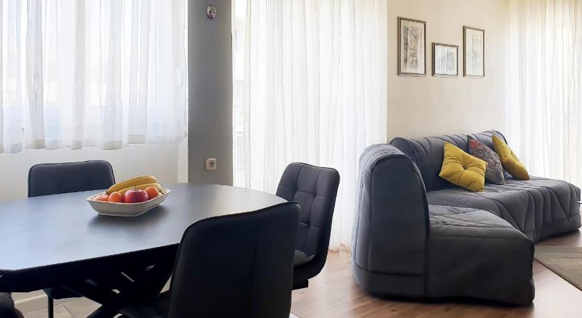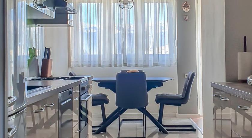 A very nice apartment, comfortable for 5 people. Affordable price for an early August stay. Well organized space, with a decently equipped kitchen. Has an AC, a small freezer, a dishwasher and a washing machine. Friendly owners, always available if needed. Not too far away from the city center.