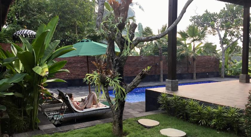 What a gem, far away from the buzz of the coast situated in a rather untouched and authentic rural village between rice fields and banana plantation. Our hosts were very attentive and provided us with a lot of information and pleasant talks in the spacious open air living room. Sadieh and Agnes have created a beautiful garden with 4 Javanese houses with a nice porch to watch the birds and butterflies. The swimming pool is big enough to really swim and relax under a parasol. The direct surroundings are very beautiful and Kerambitan is a small city worth visiting. But the most worthwhile is the friendly and considerate care of our hosts. And be sure to have dinner, the cooking is great.