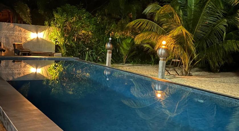 The location was really nice, with the added bonus of direct access to the beach. The place had a clean swimming pool, perfect for relaxing. The owner was very welcoming—he even picked fresh coconuts from the tree in the garden and opened them for us to drink, which was a special touch! The shower was great, with hot and strong water, and the air conditioning worked well, ensuring a comfortable stay. Breakfast was delicious and came with a beautiful view of the sea. Another plus was the convenient laundry service.