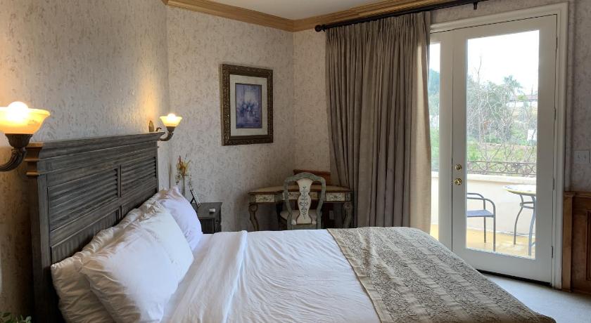 Lovely large room with fireplace, patio with seating area and large bathroom with jacuzzi tub. Really comfy bed. Lots of parking and lovely location. Breakfast was delicious - the choice wasn't huge and the free glass of wine we had before we left (arrive too late for the afternoon drink) was a lovely touch. Receptionist was super helpful about restaurants for dinner and the area.