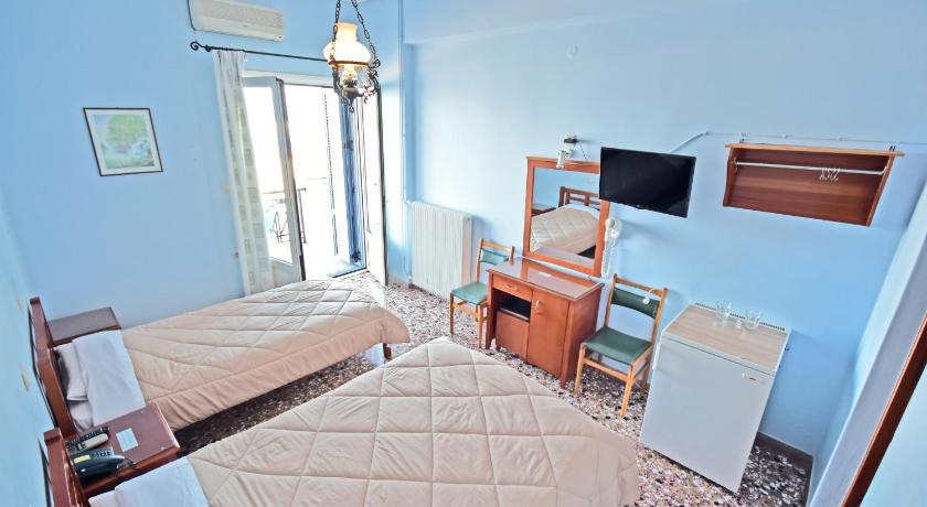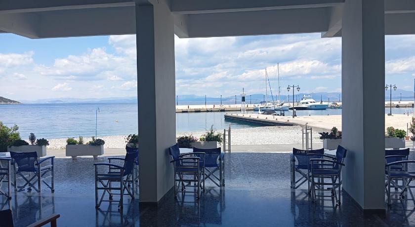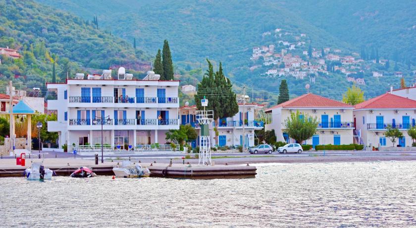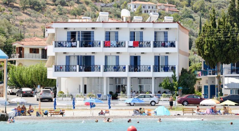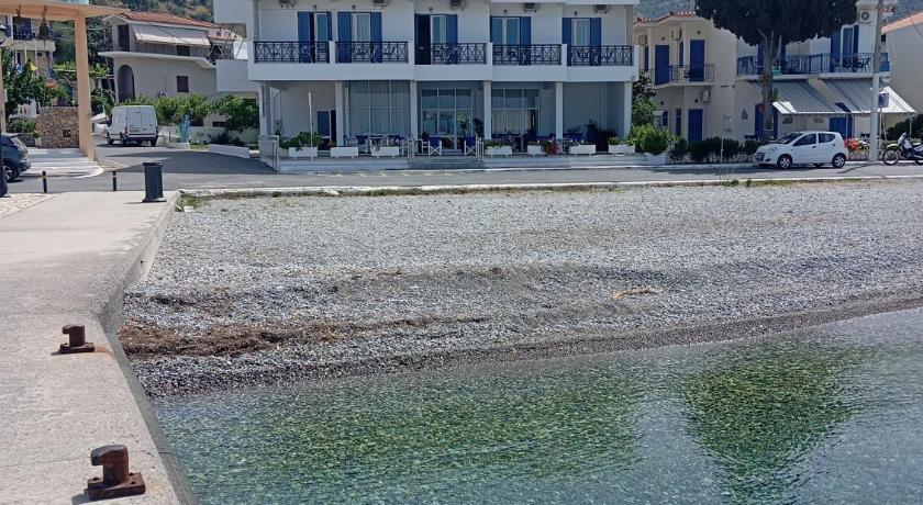 A truly lovely location in the slightly old-fashioned (in the best possible way) village of Tiros, this family-run small hotel was really super. High-ceilinged rooms with good a/c and a decent size balcony with super views over the sea and the little harbour. The front balconies are in shade in the afternoons too!They offer a very tasty breakfast. They have a dozen sun umbrellas and sunbeds reserved and free for Blue Sea Hotel guests on the (stony) beach immediately opposite the hotel just a few steps away - perfect!