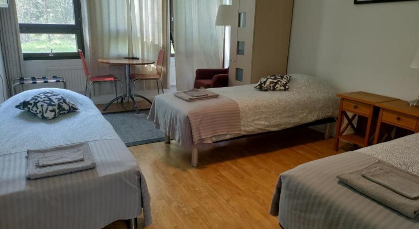 Rooms, beds, sauna and pool, self service breakfast