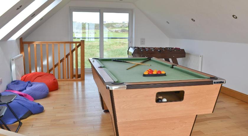 Great location for beautiful beaches Lovely enclosed garden and games room for the kids Lots of social space and comfy beds
