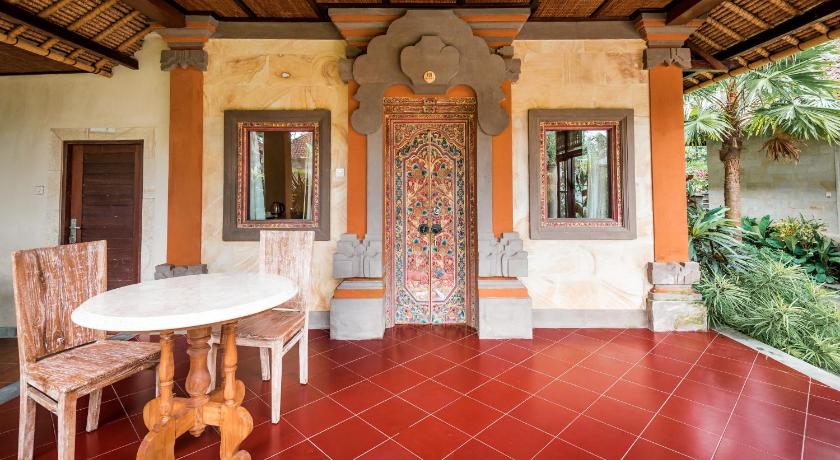 Very quiet and safe location with plenty of really great eateries a few minutes walk - there is a spa at the hotel and plenty of others on that strip - great quality indulgence. I loved my room with the traditional doors and pool garden view. I mostly walked into town but cheap taxi from Ubud centre when raining.