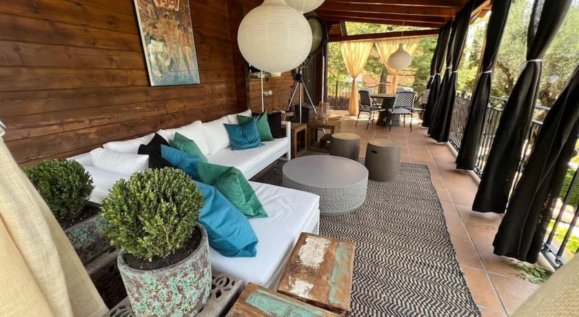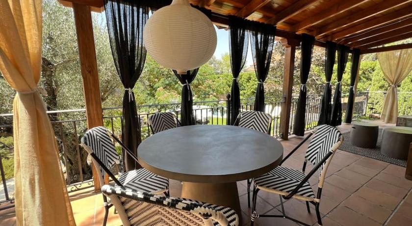 Air Conditioning, Balcony, Barbecue, Bath or Shower, Bathroom, Cleaning products, Clothes rack, Coffee machine, Desk, Detached, Dining area, Dining table, Dishwasher, Fan, Fireplace, Flat-screen TV, Garden view, Hairdryer, Hardwood/Parquet floors, Heating, Iron, Ironing Facilities, Kitchen, Kitchenware, Linen, Microwave, Mosquito net, Outdoor dining area, Outdoor furniture, Oven, Patio, Pool view, Private entrance, Private Pool, Refrigerator, Seating Area, Shower, Sofa, Stovetop, Tea/Coffee Maker, Telephone, Terrace, Tile/Marble floor, Toaster, Toilet, Towels, TV, View, Wardrobe/Closet, Washing Machine
