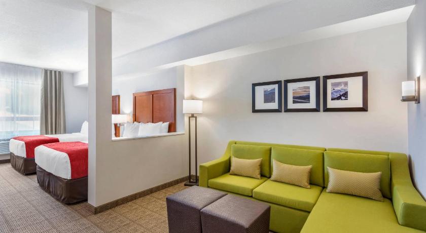 Good size room, great to have two doubles and a sofa bed. Comfortable. Liked the waffle maker at breakfast. Pool and slide were great. Only there for one night en route from Kamloops to icefields and as a location was excellent. Wasn't a huge amount of choice for food eating out locally Visitor centre for information was virtually next to the hotel.