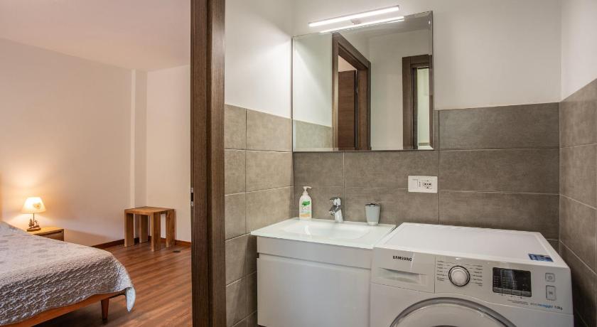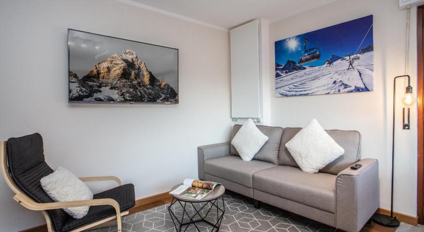 Ideal location right next to a ski hire shop and a small grocery shop. The bus stop for the bus (very frequent) that takes you to and from the nearest ski resort is a 4 minute walk and there is a huge swimming pool with jacuzzi and sauna a 6 minute walk away (also a gym). The flat is very quiet and warm and very clean. Our host Cristina was lovely and responded right away whenever I texted her. There is a locker just outside the flat to keep your skis and boots in.