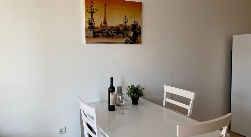 Air Conditioning, Balcony, Bath or Shower, Cable Channels, City view, Cleaning products, Desk, Dining area, Dining table, Flat-screen TV, Free toiletries, Heating, Iron, Kitchen, Linen, Oven, Private flat in building, Refrigerator, Seating Area, Shower, Sofa, Stovetop, Toilet, Towels, Tumble dryer , TV, View, Washing Machine
