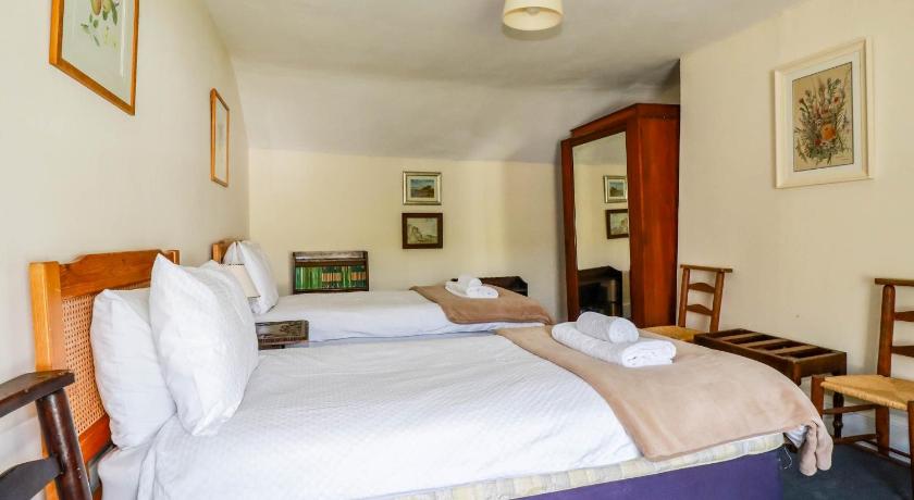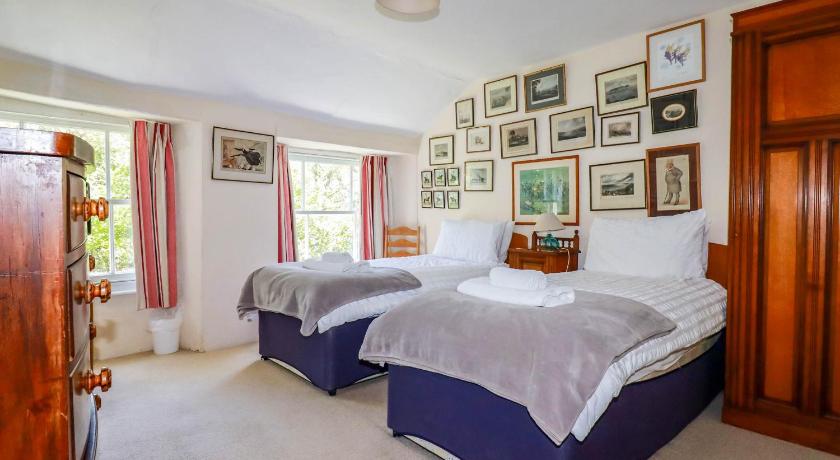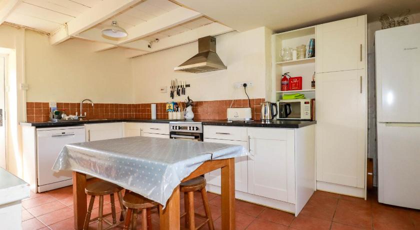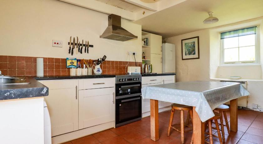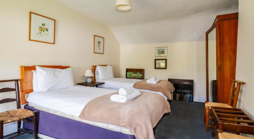 Beautiful old farmhouse with loads of character and charm. 4 good sized bedrooms, sleeps 8 people, one king bed and 3 x 2 single beds which you can place together if desired. Comfortable beds and good bedding provided. The kitchen was well equipped with a good sized fridge freezer, and everything you might want for cooking. Cosy living room with comfortable sofas. Plenty of books and games which was a nice bonus. There is a spacious garden/outside area with little style buildings such as an old stone cow byre. Great space for dogs to explore. A word of caution though - the fields next door have sheep and cows. Most of the garden is closed off but there is a place at the back where a determined dog could get through, as well as via the main entrance, just to be aware. A couple more things to note: There is only one bathroom in the house, there is a second toilet downstairs and a toilet & decent shower in a small room outside and despite there being 7 of us, we managed fine. There aren't many plugs in each room. For us this was part of the 'it's a historic farmhouse not a modern building experience' but luckily for the sake of young adult offspring we brought a couple of multi port chargers :)