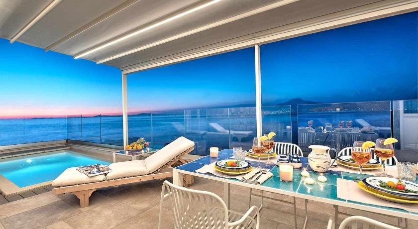 Air Conditioning, Balcony, Bathrobe, Bathroom, Bidet, Children's high chair, Coffee machine, Dining table, Dishwasher, Electric kettle, Flat-screen TV, Hairdryer, Heating, Iron, Ironing Facilities, Kitchen, Kitchenware, Linen, Microwave, Outdoor dining area, Outdoor furniture, Patio, Private Pool, Refrigerator, Safety Deposit Box, Satellite Channels, Sea view, Seating Area, Shower, Sofa, Stovetop, Terrace, Toaster, Toilet, Towels, TV, Wardrobe/Closet, Washing Machine, Wireless Internet