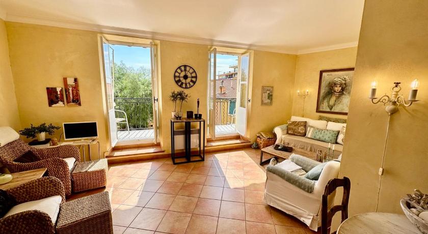 The veranda overlooks beautiful Place Felix Poullan - church bells sound on the hour- and in between! The apartment is tastefully decorated in keeping with the charming old building