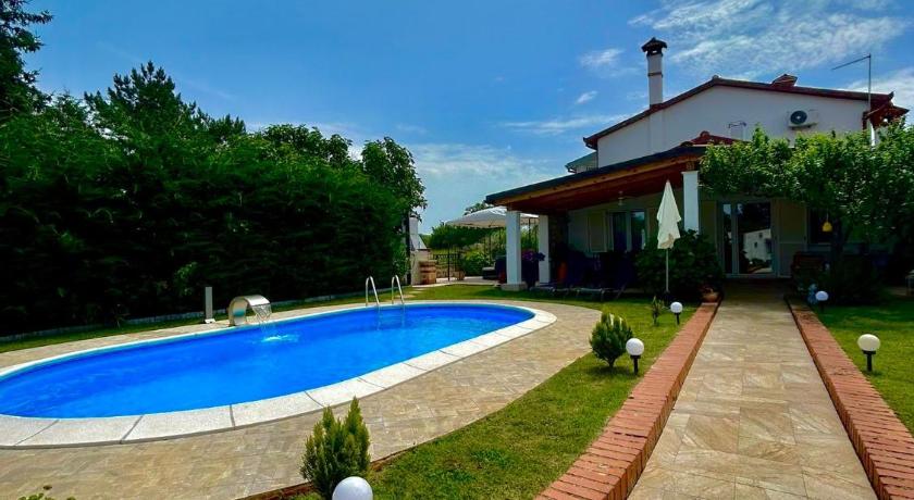The property was very clean and had all needed facilities for family vacation. Our hosta Masha, Iva and Jakov were exceptionally kind and helpful. Upon our arrival, we were greeted with Istrian wine and a plate of traditional Istrian cold appetiser. The pool is specious and the outdoor porch was most preferd place to spend time at. Owners has think through every detail. Two out of three rooms have en-suite bathrooms. Children loved plate of chocolate muffins they got from Masha. Grandparents loved their easily accessible room from ground floor with own bathroom. The house is located in small village close to a road to Visnjan and Motovun but still it is very private and peaceful. Close to all major wine roads in the region.