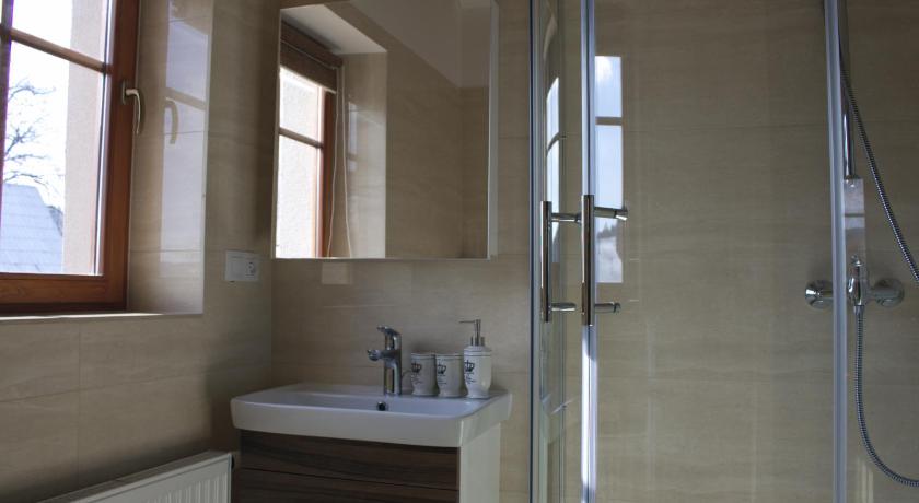 Very nice, clean, and spacious appartement in a picturesque location, very close to the forest and meadows. We could park the car right next to the house. Our dog could stay with us. Nice view from the windows. Comfortable beds.