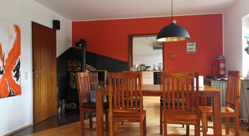Additional Toilet, Balcony, Barbecue, Bath or Shower, Bathroom, CD Player, Children's high chair, Cleaning products, Coffee machine, Desk, Detached, Dining area, Dining table, Dishwasher, DVD Player, Electric kettle, Fireplace, Flat-screen TV, Garden view, Hairdryer, Hardwood/Parquet floors, Heating, Iron, Kitchen, Kitchenette, Kitchenware, Linen, Mosquito net, Outdoor dining area, Outdoor furniture, Oven, Radio, Refrigerator, Satellite Channels, Seating Area, Shower, Sofa, Stovetop, Tea/Coffee Maker, Tile/Marble floor, Toaster, Toilet, Towels, TV, Upper floors accessible by stairs only, View, Wardrobe/Closet, Washing Machine