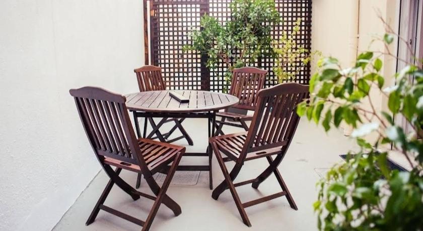 Additional bathroom, Air Conditioning, Bath or Shower, Bathroom, Clothes rack, Coffee machine, Desk, Dining area, Dining table, Electric kettle, Flat-screen TV, Free toiletries, Hairdryer, Hardwood/Parquet floors, Heating, Iron, Kitchen, Kitchenware, Linen, Outdoor dining area, Outdoor furniture, Oven, Patio, Private flat in building, Refrigerator, Seating Area, Semi-detached, Shower, Sofa, Soundproofing, Stovetop, Tea/Coffee Maker, Tile/Marble floor, Toilet, Towels, TV, Upper floors accessible by stairs only, Washing Machine