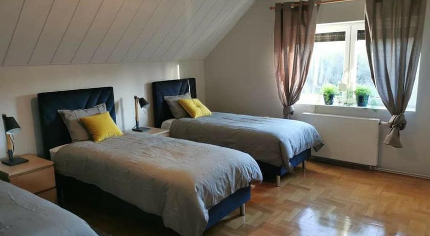 The house located in great green aria in small village. Huge house for up to 12 people. Tomek was very friendly.