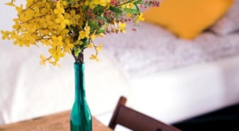 Simple room with beds, one table and shared bathroom. A simple kitchen with a kettle, sink and some dishes was also at our disposal. The window led into a nice calm garden. Everything was clean and we didn't have any problem with nosie at night. The house is located in a very calm part of town yet well connected to the city center by bus.