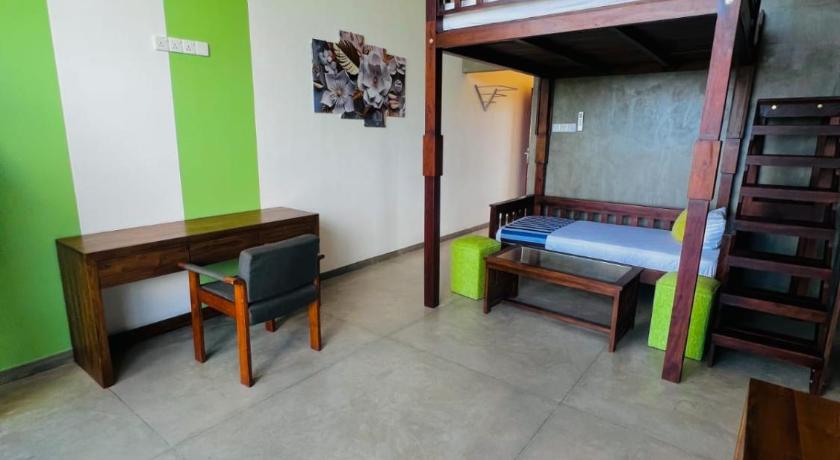 The accommodation was decent and well-maintained, with a clean pool and a charming rooftop garden that served as the breakfast area. The room felt spacious thanks to a clever bunk bed design—a double bed on top and a couch below—leaving plenty of extra space. The best part? Waking up to an incredible morning view from the rooftop, watching the swell roll into Weligama—absolutely breathtaking!