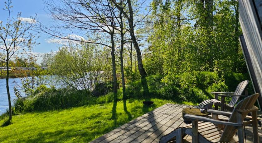 Bath or Shower, Bathroom, Children's high chair, Coffee machine, Dining area, Dining table, Electric kettle, Fan, Garden view, Heating, Kitchen, Kitchenware, Lake view, Linen, Outdoor furniture, Refrigerator, Riverview, Shower, Stovetop, Tea/Coffee Maker, Terrace, Towels, Towels/Sheets (extra fee), View, Wardrobe/Closet
