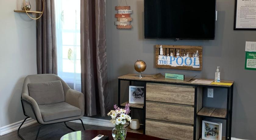 The cottage was impeccable and equipped with everything needed for relaxing, entertainment, sleeping and cooking. The hostess was friendly and added little extras, including a personalized welcome sign, a basket of treats and fall decorations. The interior was updated and tastefully decorated and the outside deck and pool nicely furnished with an amazing view overlooking the lake. The cottage was very private and the grounds were well maintained.