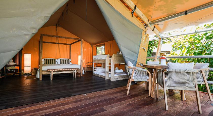 Very thoughtful glamping. Very clean and peaceful. Great idea the food trucks. Beautiful location