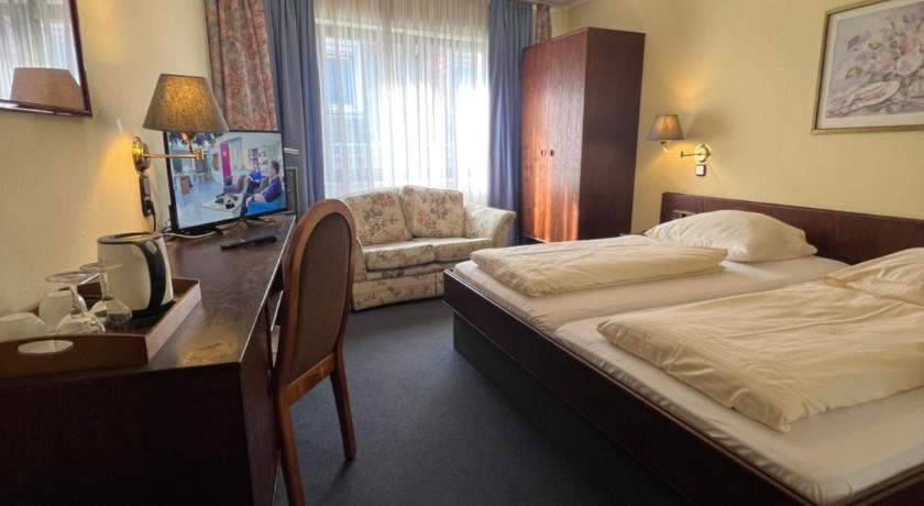 The Central Hotel was a unique property in an older building located in the historic district of Worms. The price and location drew us to stay there. The elevator was small and the 3 of us had to make 2 trips to get to our floor, a minor inconvenience. Our room was accommodating and there was a hot water pot and tea that we thoroughly enjoyed. The double room had separate beds, a wardrobe, coat hooks, electrical outlets, and a desk/chair. The tiled bathroom was standard for Germany with a shower. Each room had a window that opened to a square courtyard that were the backs of several buildings. The Wi-Fi was secure and fast! The small parking garage was interesting.