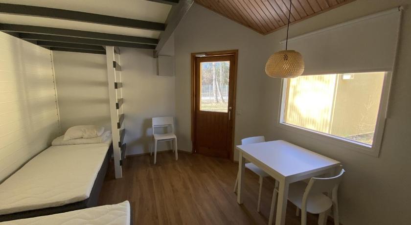 Great location, 300m away from the beach. Staff are very helpful and well mannered. We rented the holiday cottage that includes bathroom, shower and kitchen which helps a lot when you have younger kids with you. Beautiful surrounding, relatively quiet despite being in summer and jammed with people.