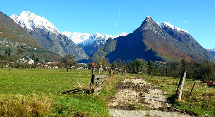 Great apartment in a peaceful location. Great base to explore Soca valley and alps. Very well equipped kitchen and plenty of room inside and outside to relax and enjoy the views and solitude. Easy walk to a Pizzeria, small store and a Restaurant.