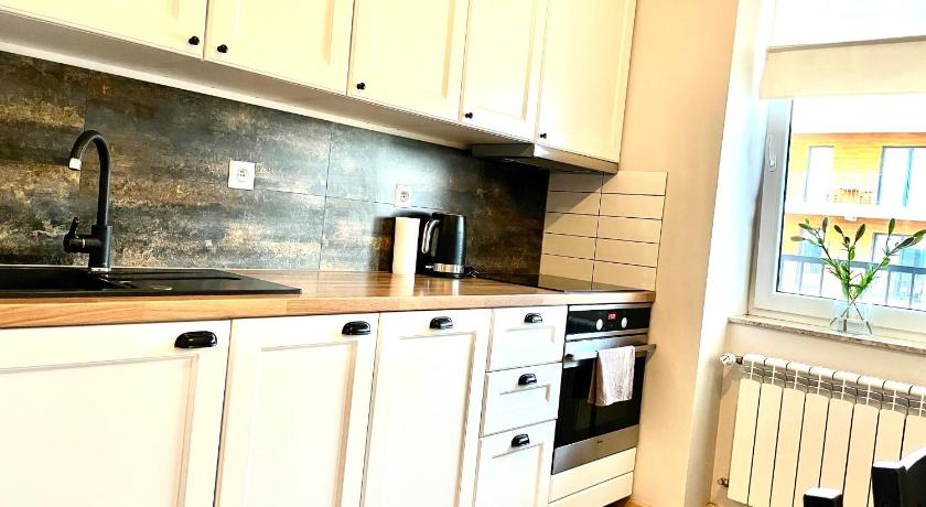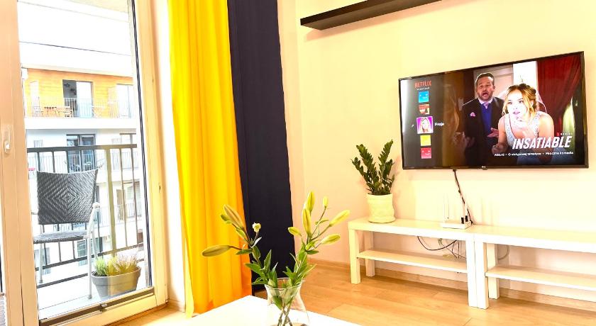 Great location, shops, restaurant, bakery, pharmacy, all is nearby and it’s 20 minutes walk to Energylandia. The apartment is spacious, very clean and well equiped with all basic items you need, even tea and coffee in the kitchen. Very comfortable beds in bedroom and blackout curtains. The host was very nice, we didn’t have cash for the local tax and she enabled us to transfer it online.