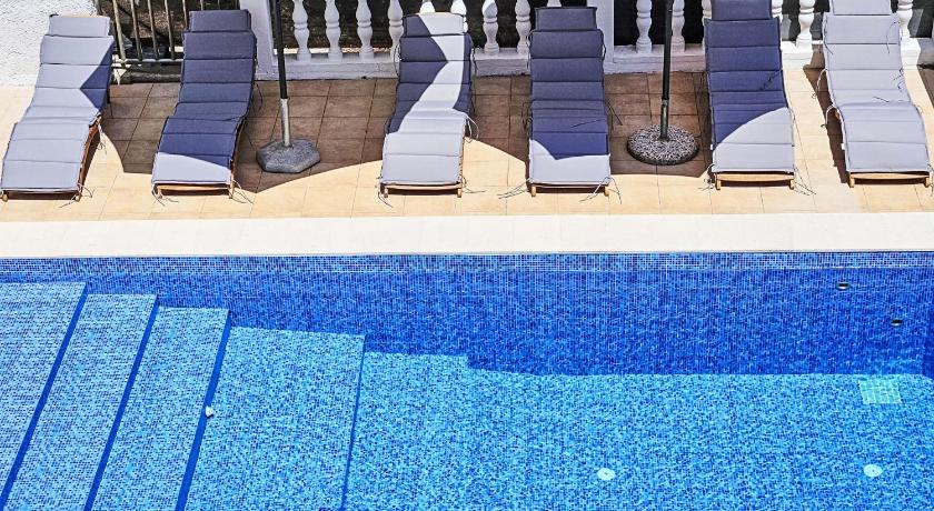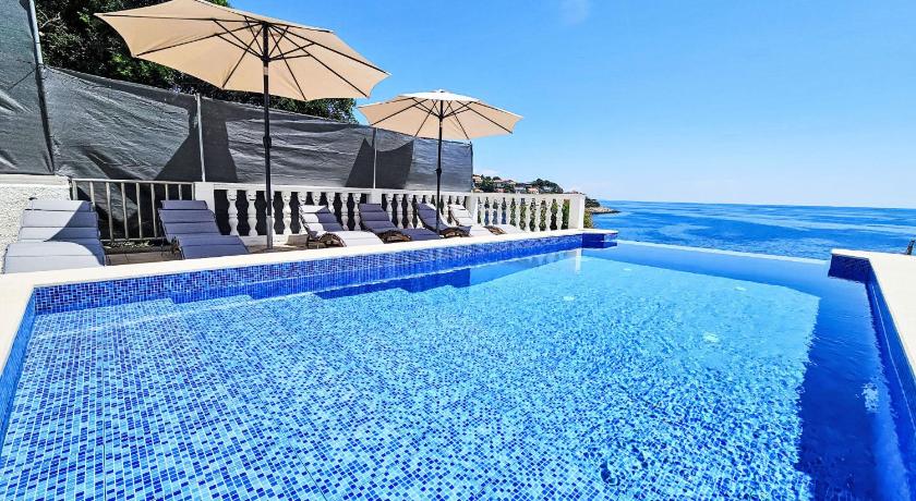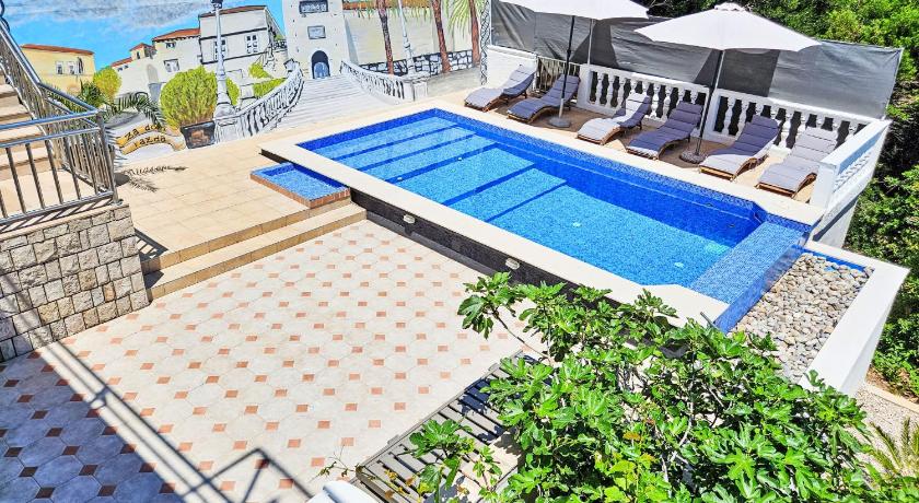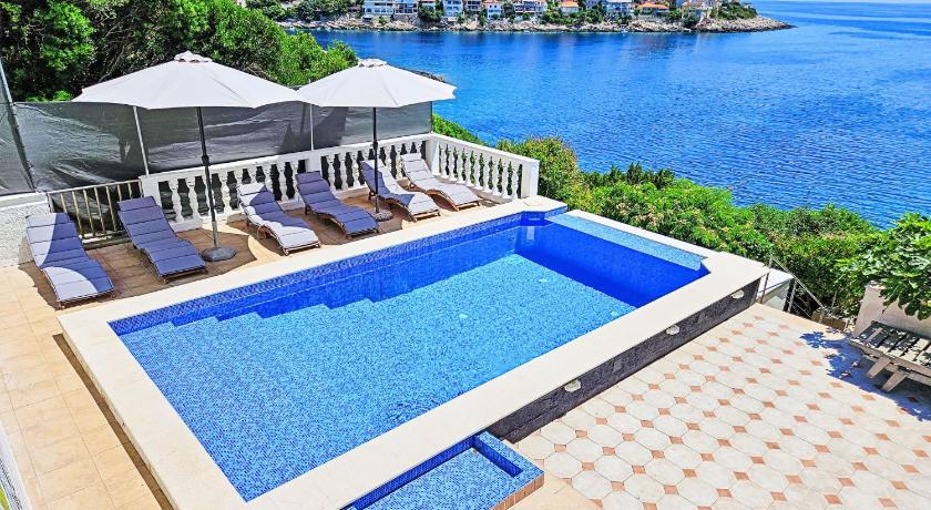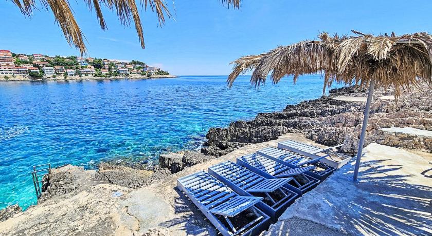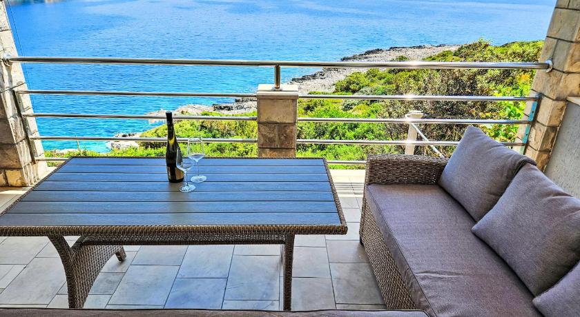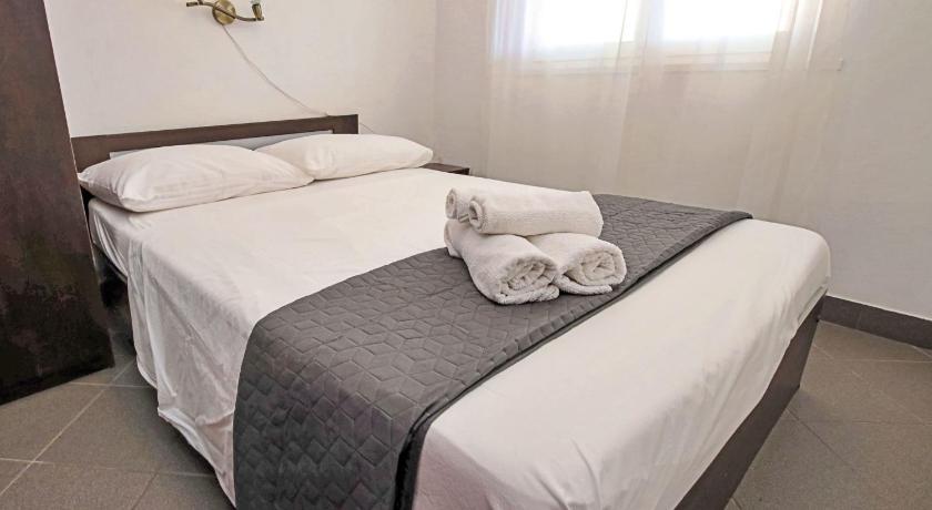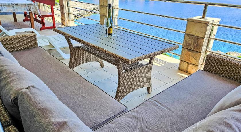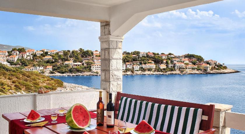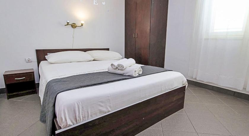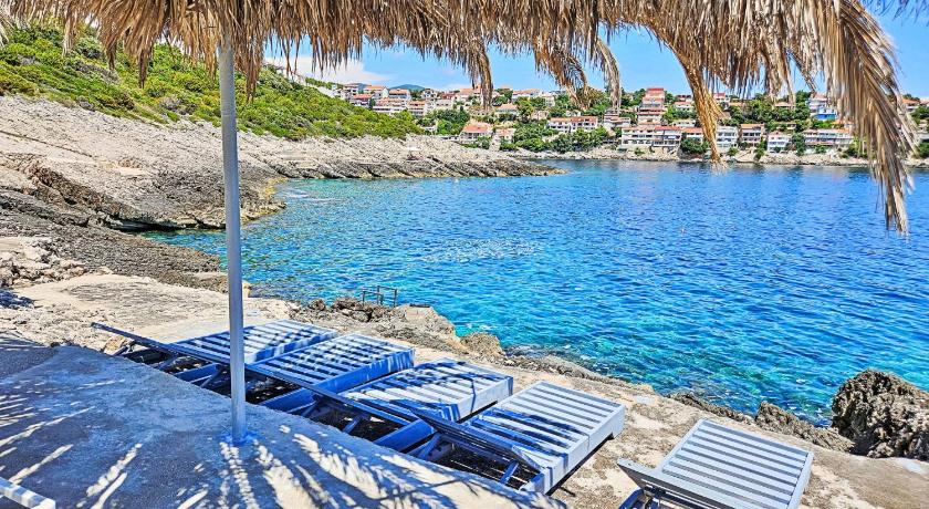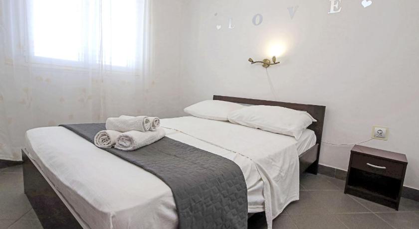 It's a very quiet place, with one local market and one local restaurant. The rest of the island is easily accessible by car. The accommodation itself was amazing, with spectacular views from the balcony and the kitchen. The house was tidy. We stayed in apartment number 5, which has three rooms. All of the rooms have nice, comfy beds, and one is equipped with an en suite bathroom. The kitchen is nicely equipped with items for easy cooking. The balcony is very spacious and gets enough sun during the day. The swimming pool also has an amazing view and has lounge chairs to enjoy a good, sunny day. There are also steps to access the sea with a small jumping board and a lounge area, all within a 1-minute walk from the apartment. I would definitely recommend it for a nice and peaceful retreat.