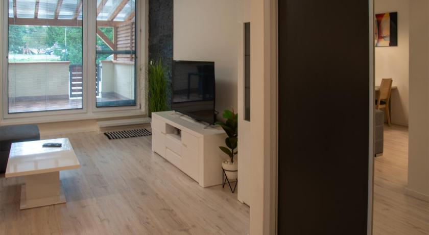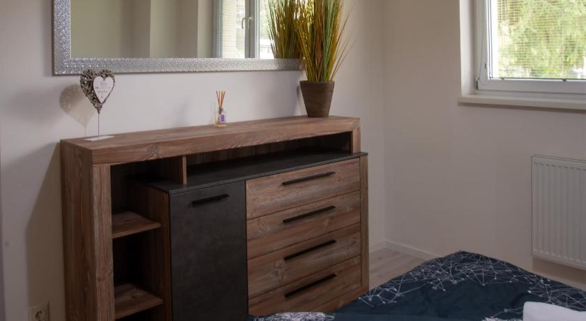 Very good location nice and quiet, close to the town lots of nice pubs restaurants around , big supermarket just 5 minutes driving if not less . Little aqua park called Orlik near by , very handy when is hot outside! Apartment clean and well look after . Easy communication with owner very happy , will definitely come back again :)